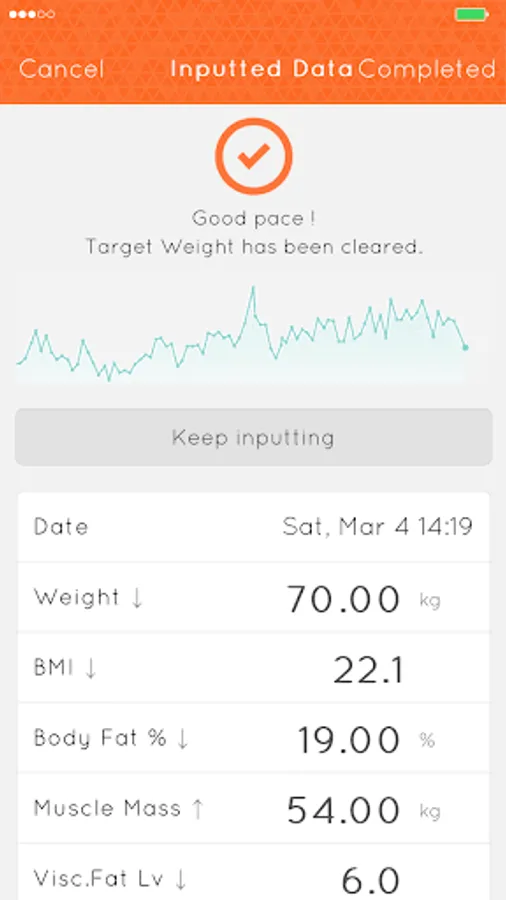 A dual-axis graph can display two items together. You can check changes in your body fat or muscle mass while checking weight changes to build a body that won’t rebound!