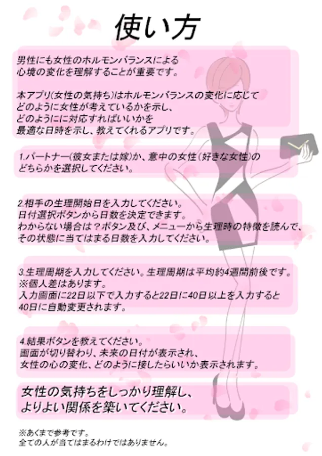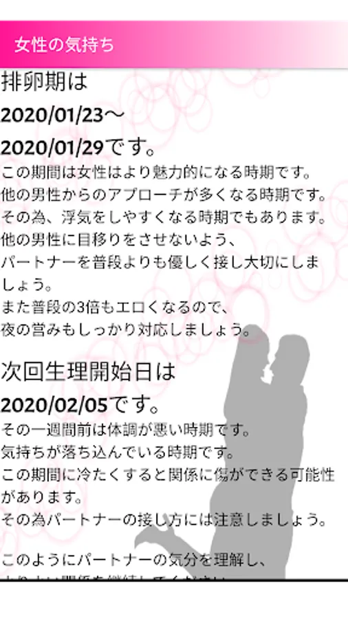 It also calculates the next menstrual day and ovulation day, so it can be used to manage women's menstrual days.