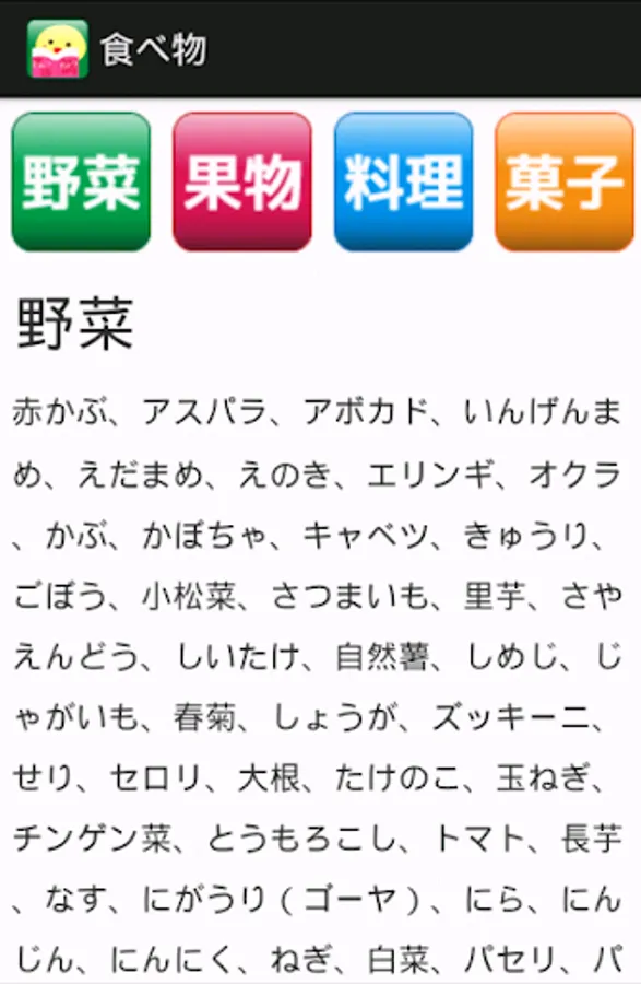 When you press the button, the words that apply to each category will be displayed in the list.