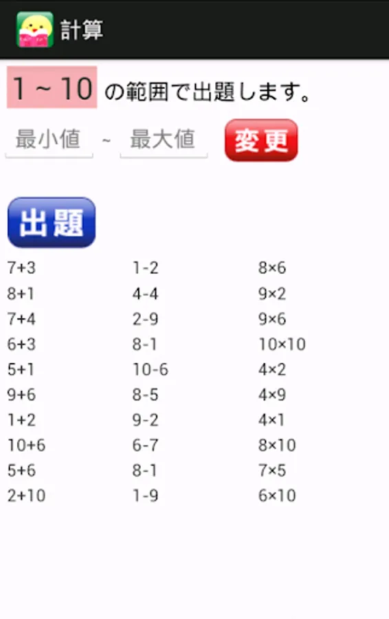 In the calculation, the problem of addition, subtraction, multiplication, press the button questions will be questions at random by 10 questions each.