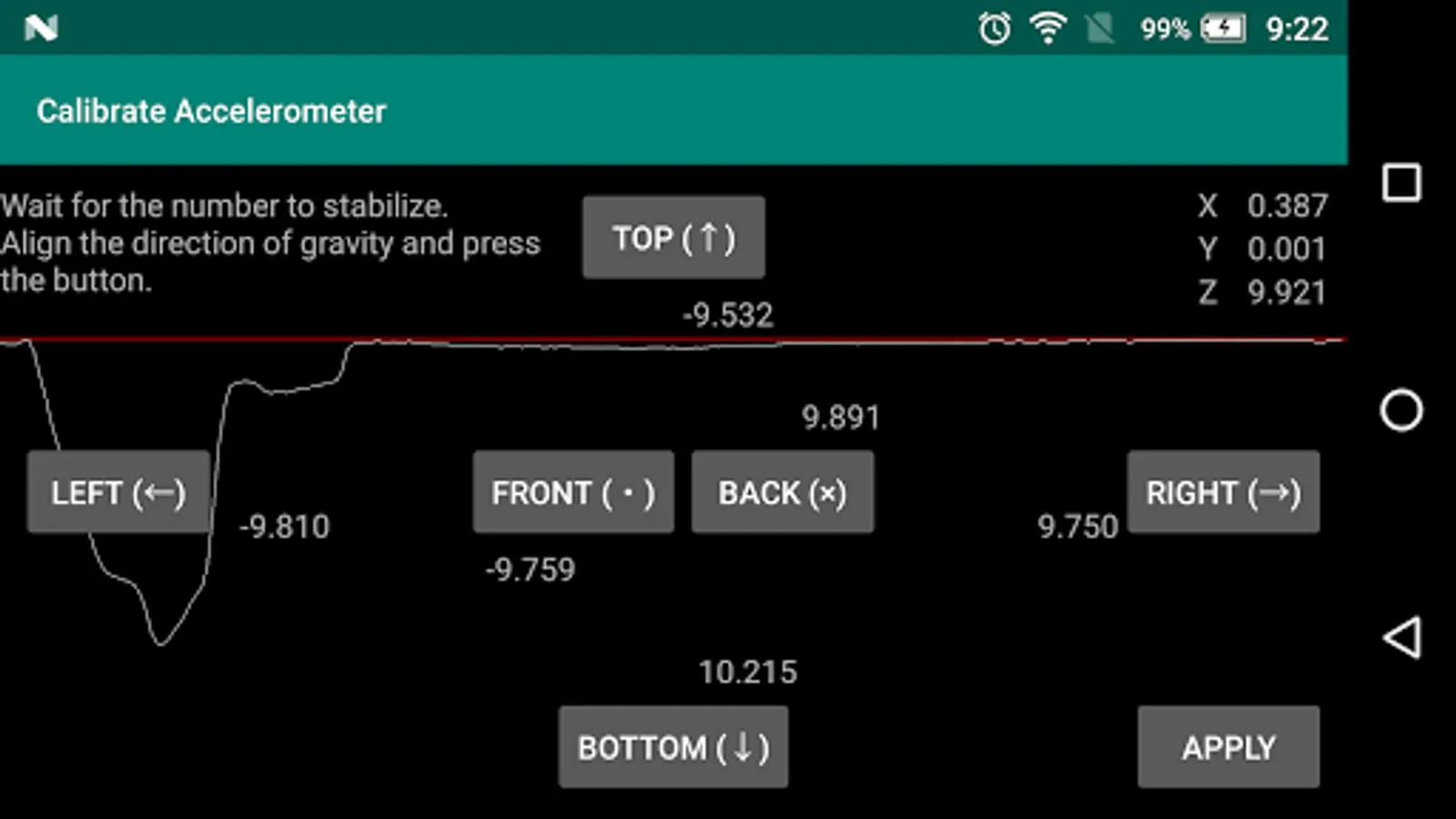 2. Point one side of the smartphone to the ground, and press the arrow button in the direction when the value is stable.