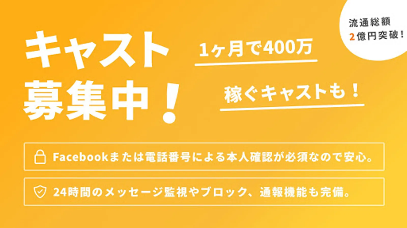 キャスト登録希望の方はアプリ内のお問い合わせから『キャスト希望』とご連絡ください。