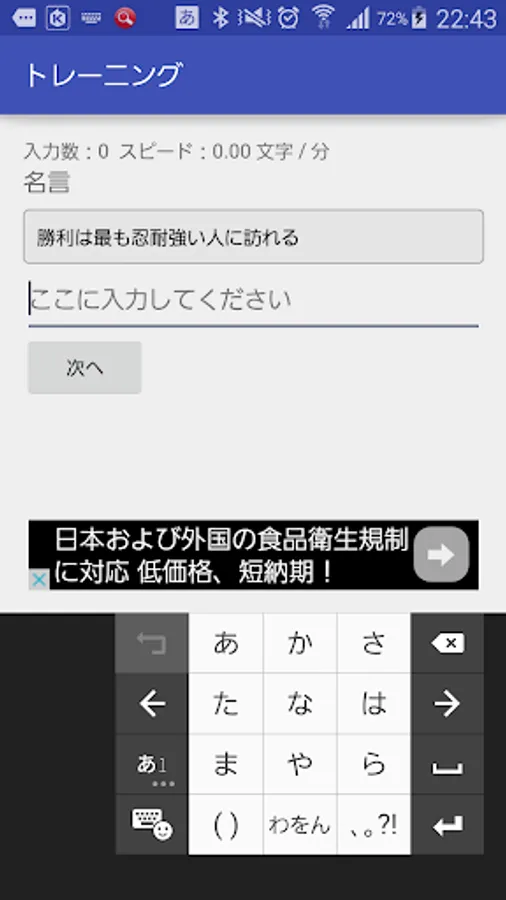 Speedを計測していると、同じ文言でも、毎日違うことが分かります。集中力が高い日はかなりいいスコアが出せるでしょう。電車での移動中の集中力トレーニングにも最適です。