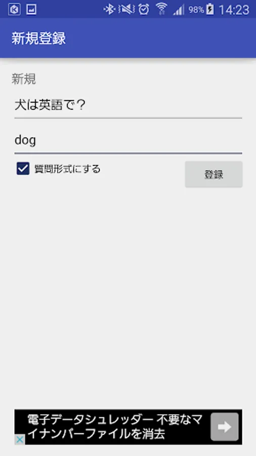 また質問形式で文章を登録すれば、暗記カードのように使えます。