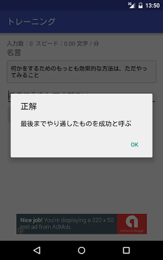 デフォルトでは、名言が登録されますので、毎日名言をタイピングすることで、前向きな気持ちになれます。