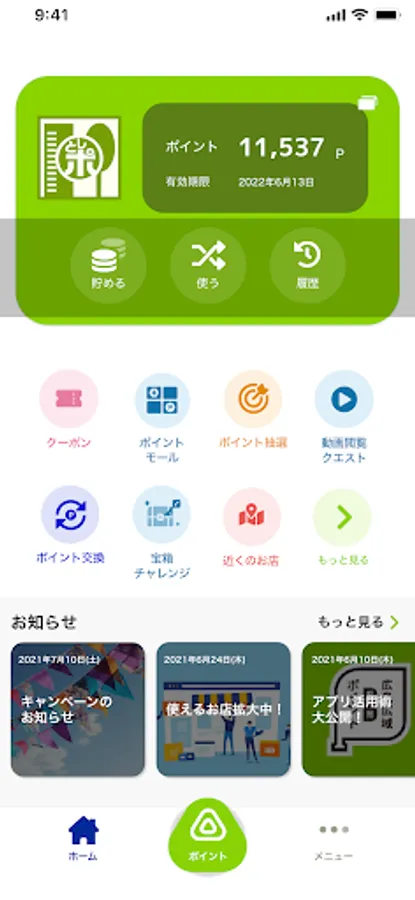 Saving money by doing good things for the community, such as shopping at local stores, supporting local sports teams, participating in administrative events held in the community, and using services provided by local businesses. I can. For example, if you shop at a participating store, you will earn 1 point for every 100 yen (excluding tax).