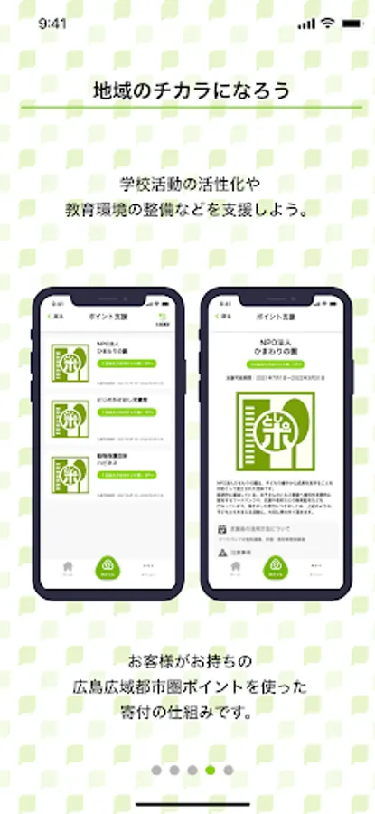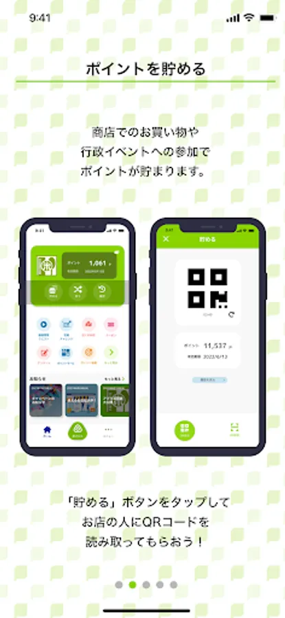 The "Toshipo-Hiroshima Wide Area Point App" is also equipped with a that can be used at member stores and a that allows you to receive advantageous information from the government and stores.