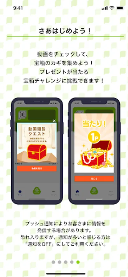 ・ You can participate in a lottery where you can win points by using the "treasure key" you get after watching the video. You can also earn points by answering questionnaires.