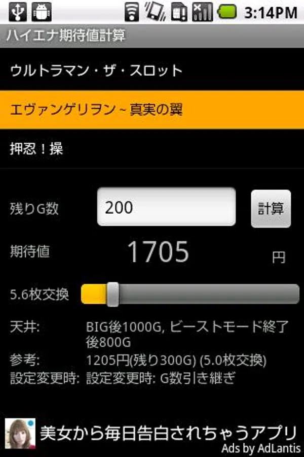 パチスロの天井搭載機種における期待値を計算するアプリです。