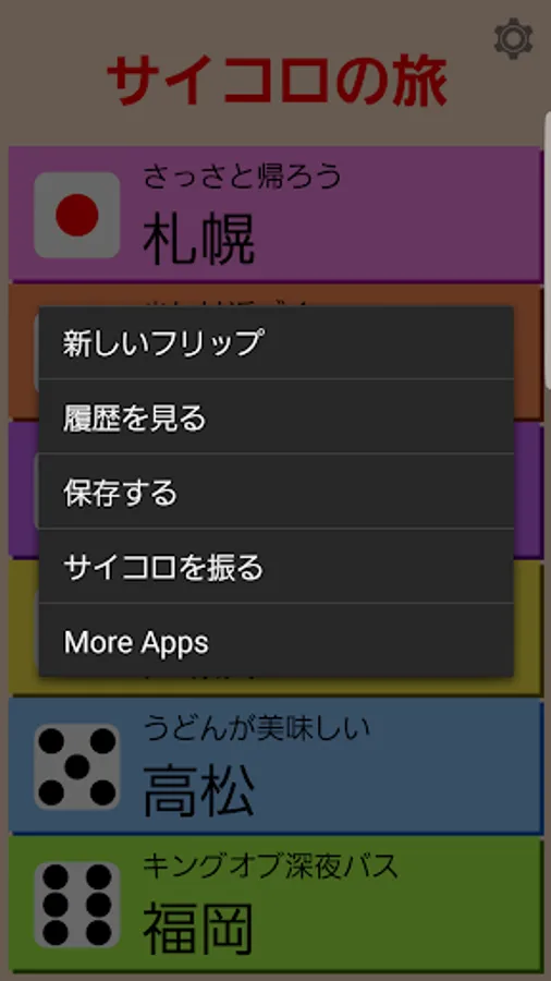 When you open the menu at the top right of the screen, you can save the input data to the SD card, read the input data from the SD card, shake the dice.