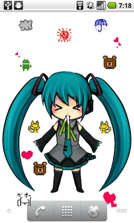 This App is a simple Live Wallpaper. Enjoy Miku Hatsune simply speaks and moves.