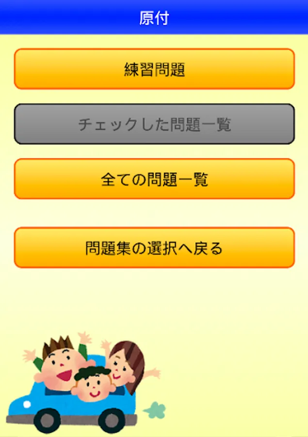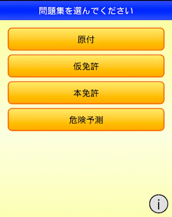Errata expression is a full-fledged learning app. Problem is divided by each driver's license written test, you can challenge efficiently concentrated in the Department of problem necessary. In addition, you can feel learning effect because it "to challenge problems Incorrect" button also challenge the history to re-challenge can function and now remain from. This app can be very easy to understand without stress comfortable operation.