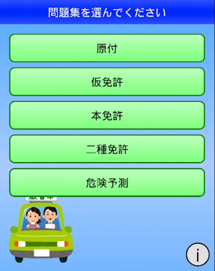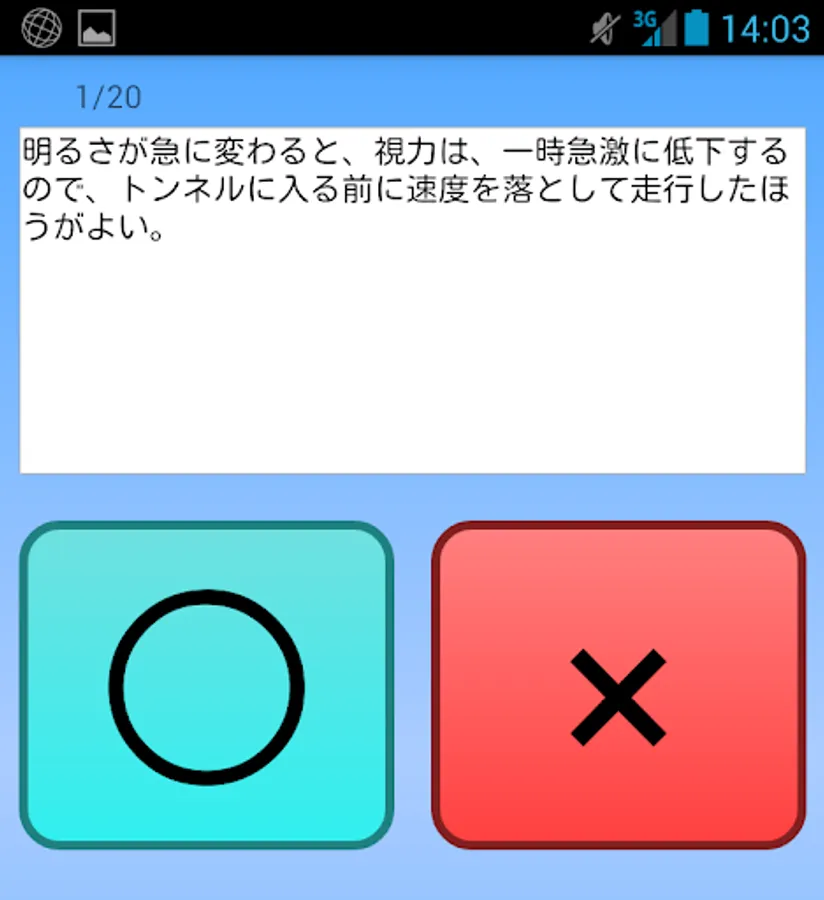 正誤式の本格的な学習アプリです。 問題は各運転免許学科試験別に区分され、必要な学科問題に集中して効率よくチャレンジできます。また、「不正解した問題に挑戦する」ボタンから再挑戦できる機能や今まで挑戦した履歴も残るので学習効果が実感できます。このアプリは非常に分かりやすくストレスなく快適に操作できます。