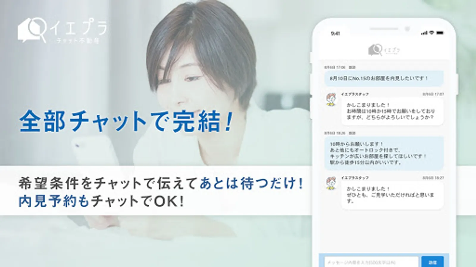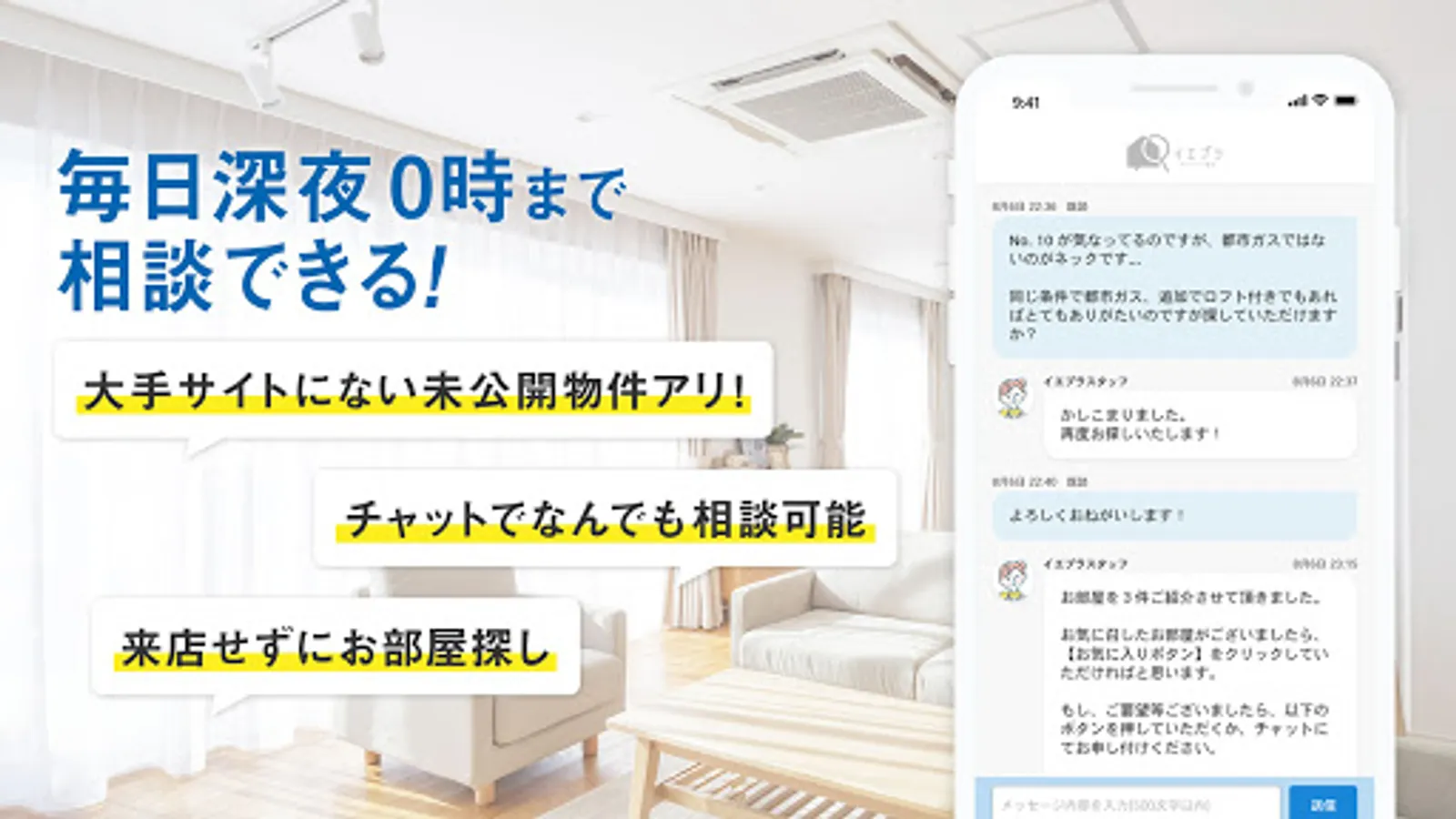 In such a case, it would be convenient if you could search for a room by chat without visiting the store. You can search for a room in your spare time even on a commuter train or in the bath. That is "Yepla".