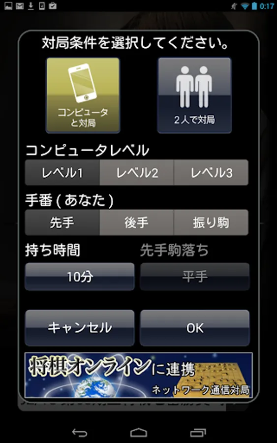 対局モードではルール通りにしか指せないし、コンピュータLv.1はだいぶ弱く、いきなりボコられる心配もないので、実戦に慣れながらルールを覚えることも可能です。