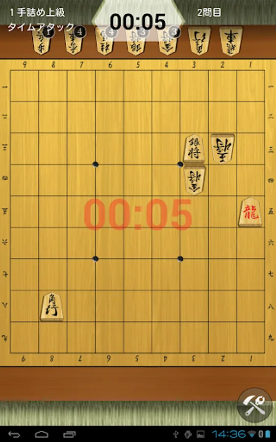 慣れてきたら詰め将棋の「1手詰め初級」にチャレンジ。