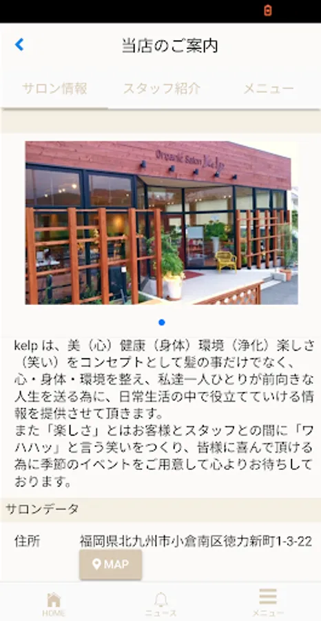 A natural-oriented health and hair-friendly beauty salon located in Kokura Minami Ward, Kitakyushu City.