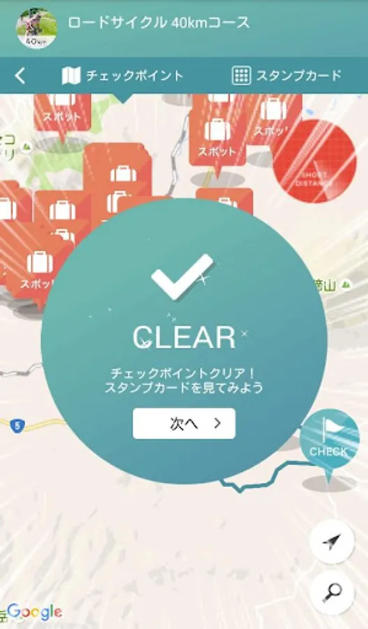 4. When you reach to a check point, a colour of the radar is changed and you can get a stamp.