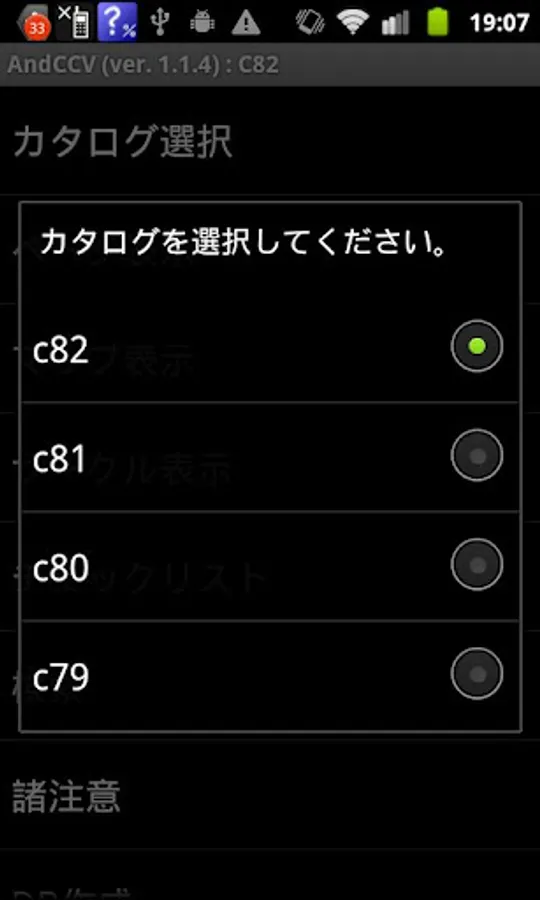 ダウンロード完了後、メインメニューに戻り、「カタログ選択」でダウンロードしたカタログを選択してご利用ください。