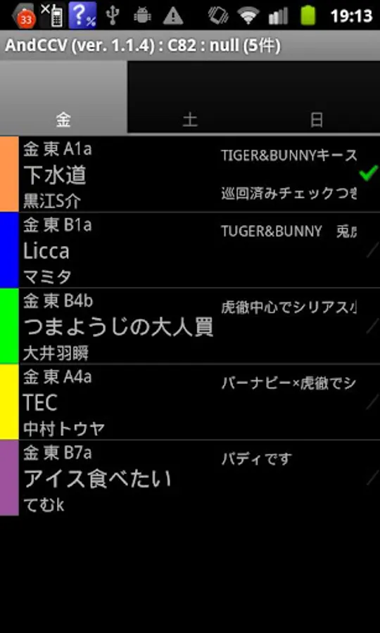 チェックリストの読み書きは、第一ストレージ(おそらくは内臓ストレージ)のトップレベルに「ccv」というフォルダを作り、そこにイベント名(C87なら「c87」)のフォルダを作り、そのなかのCSVファイルに対しておこないます。