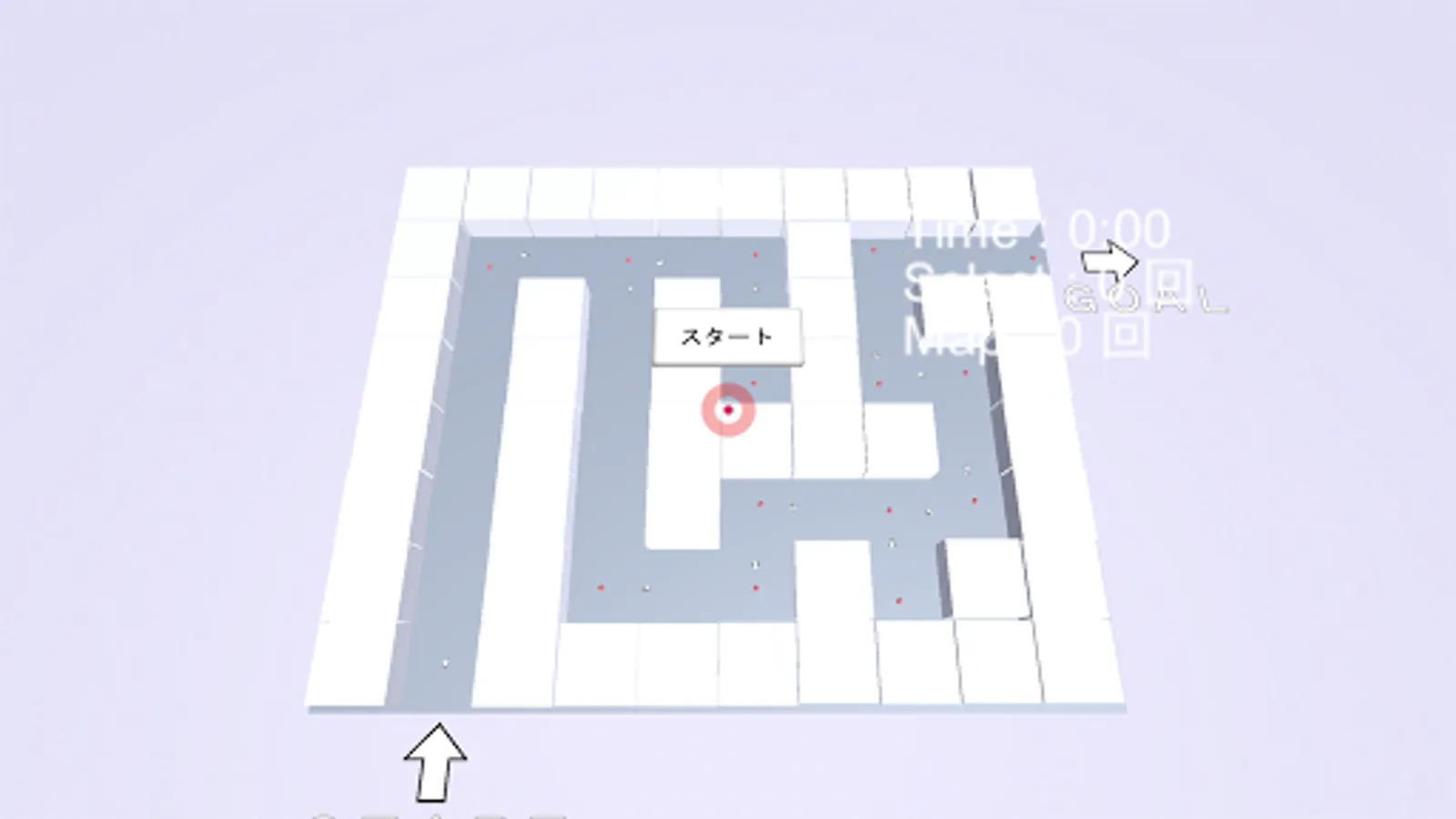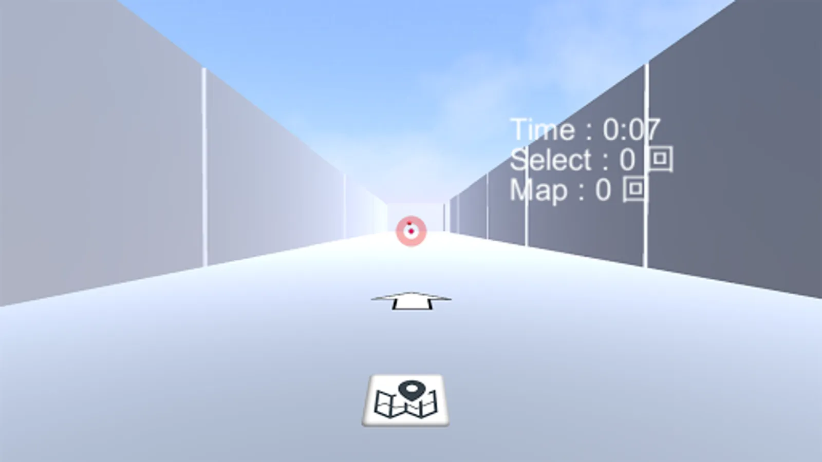 画面中心の円を道の分岐点にある、赤い球体に合わせ続けることで移動できます。