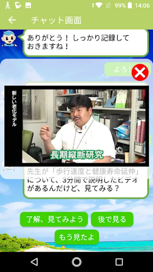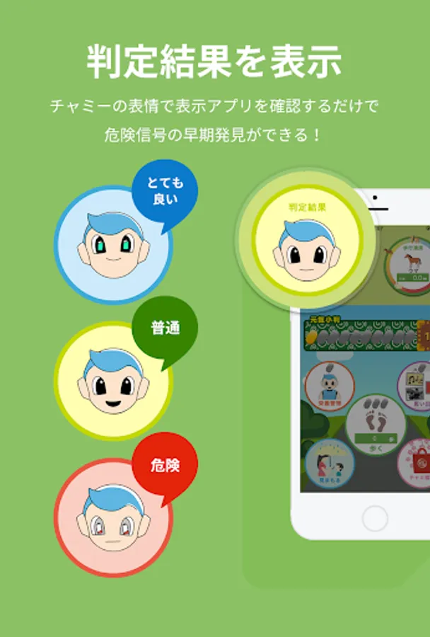 ・Health management robot "Chami" in the app will look at your data and give encouragement and advice.