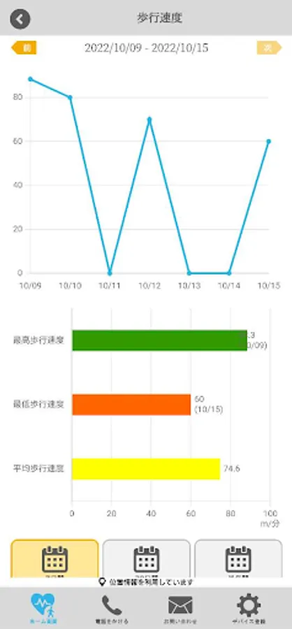 This application measures the daily walking speed of the wearer on a smartphone terminal, displays the analysis results, etc., as well as checks sleep, meals, daily activities, and displays calorie consumption.