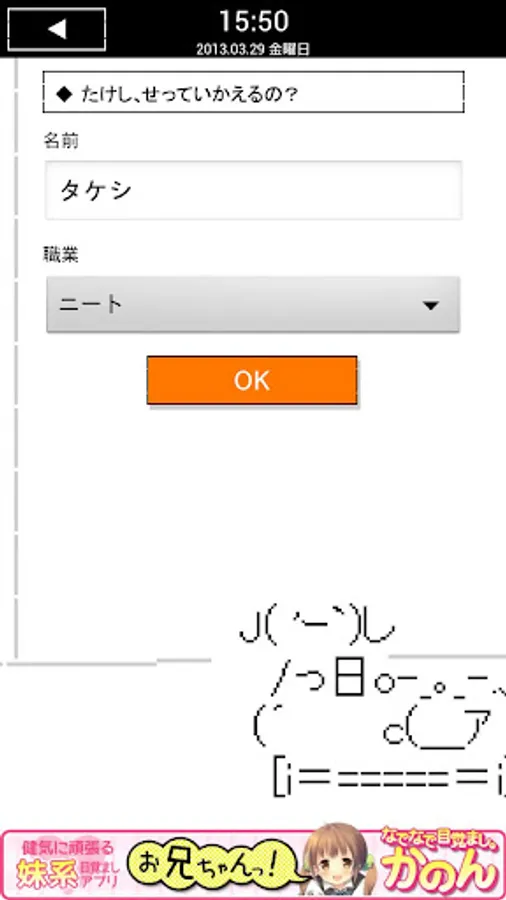 「なでなで目覚まし。カーチャン」は毎日タケシを起床させる為、健気に頑張る母親系目覚ましアプリです。