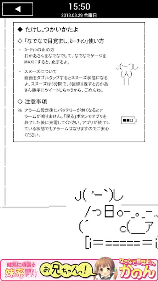 J( 'ー`)し<「なでなで目覚まし。カーチャン」インストールして頂戴ね。
