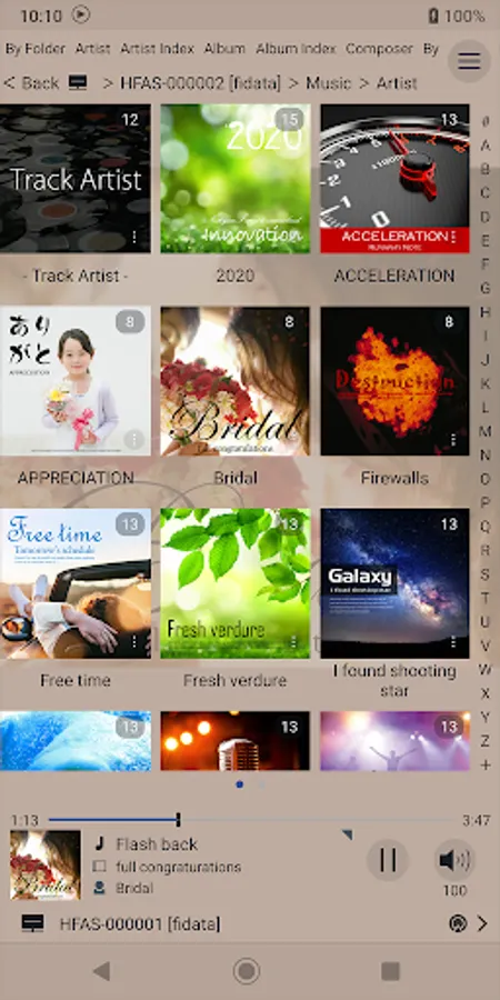You can customize the layout, color, display size of artwork, etc. about fidata Music App by the user's preference.