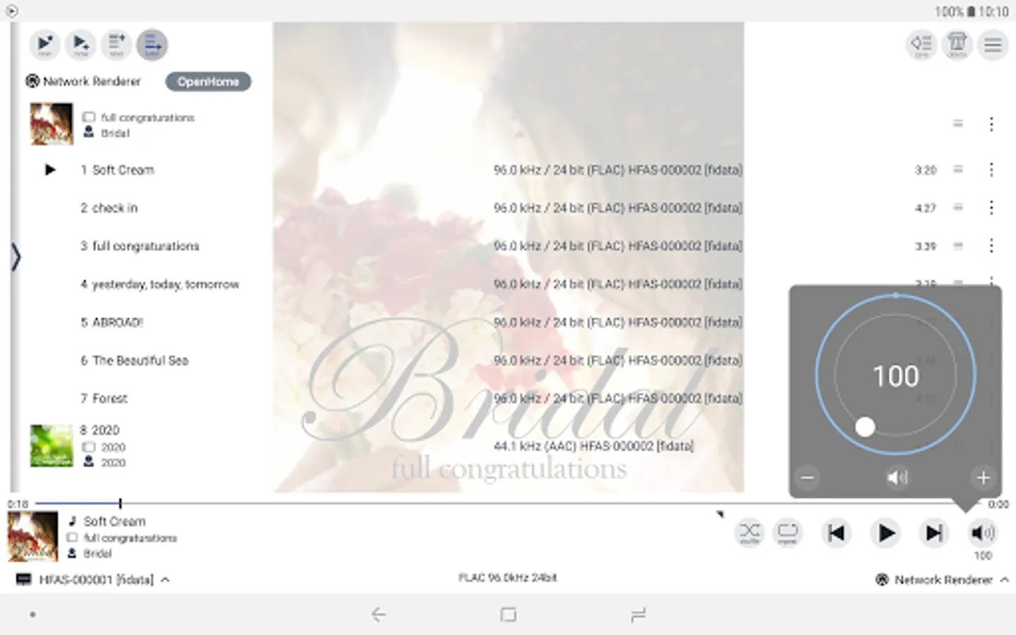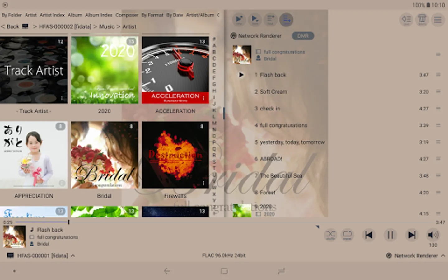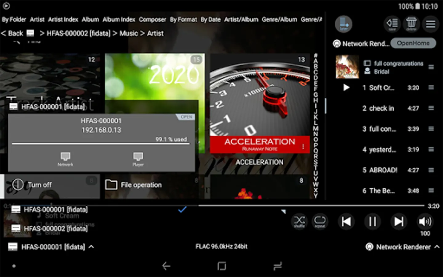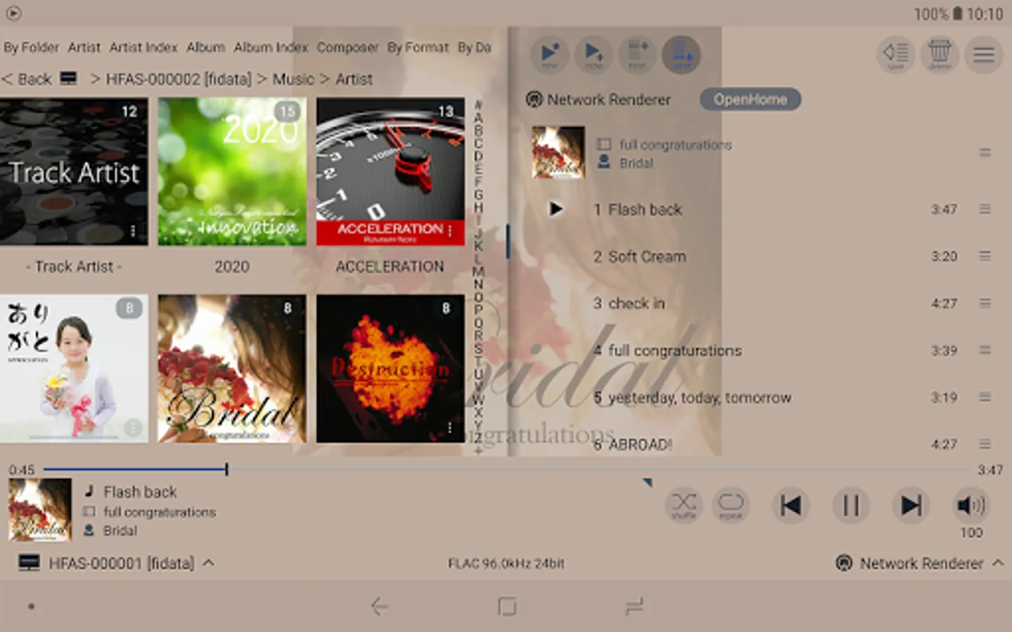 fidata Music App is a controll application conforming to OpenHome / DLNA that smartly operates fidata Network Audio Server HFAS1 on your Android devices.