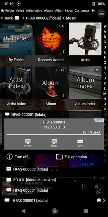 In combination with fidata Network Audio Server HFAS1, file operations of connected USB storage can also be performed, so even in environments without a PC, it is possible to organize and move/copy on your music libraries.