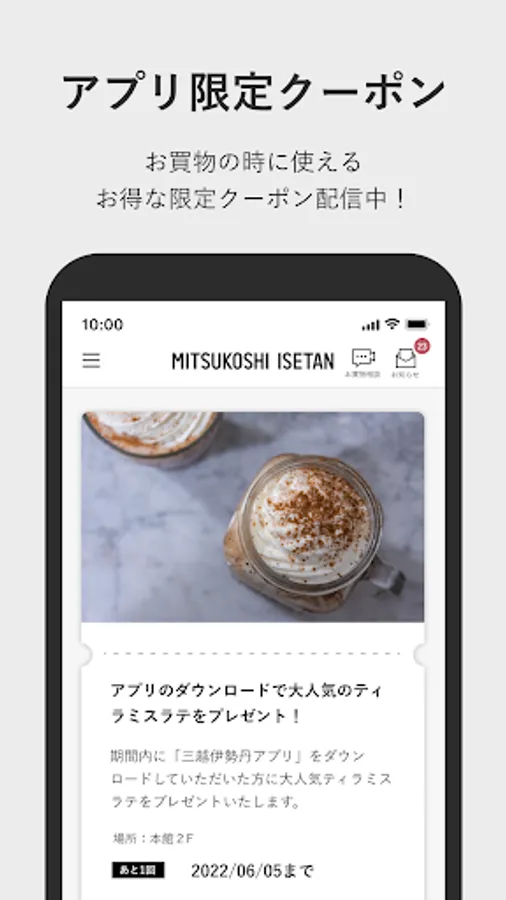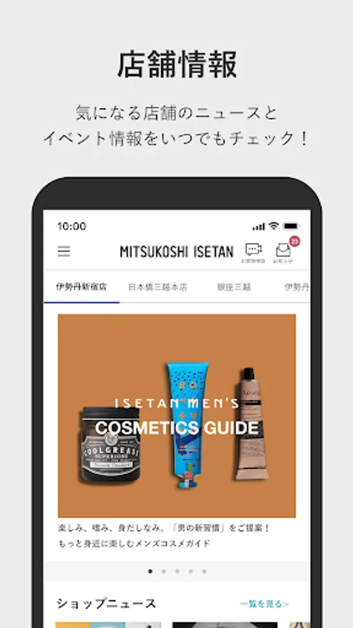 A shopping function with a newly launched app. You can enjoy shopping easily and conveniently at the online store with a wide selection of products unique to Isetan Mitsukoshi.