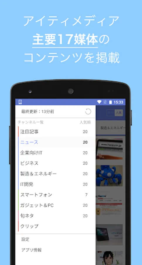 All IT news, 16 media (ITmedia, @IT, MONOist, Netorabo, etc.) are classified into 9 channels and provided.
