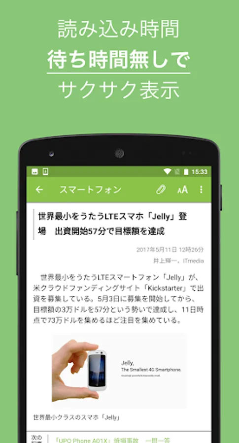 Since the article text is downloaded in a batch, it is possible to browse crisply even in places with weak radio waves (*).