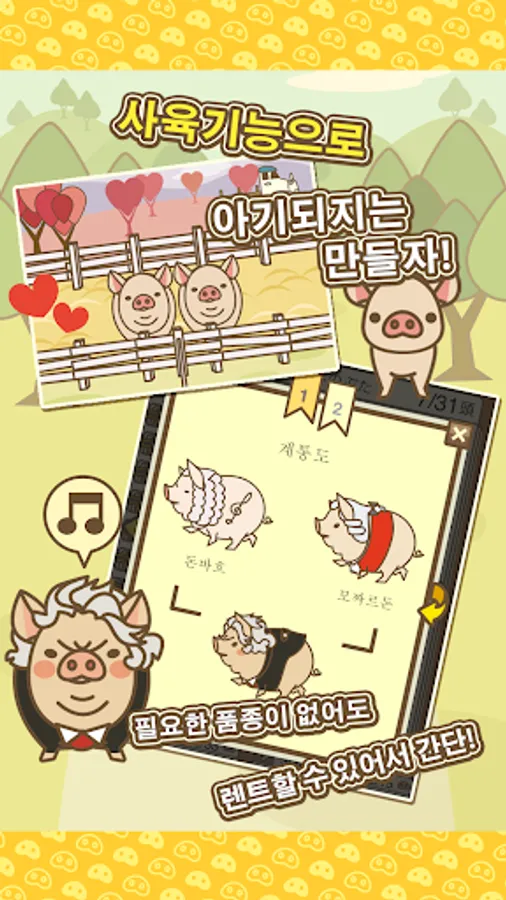 암컷돼지와 수컷돼지의 짝을 짓게하고 새로운 품종의 새끼 돼지를 낳을 수 있는 사육 기능을 사용할 수 있게 되었습니다.