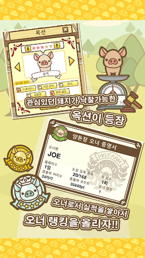 돼지를 출하하는 만큼, 양돈장 오너 랭크이 올라갑니다.