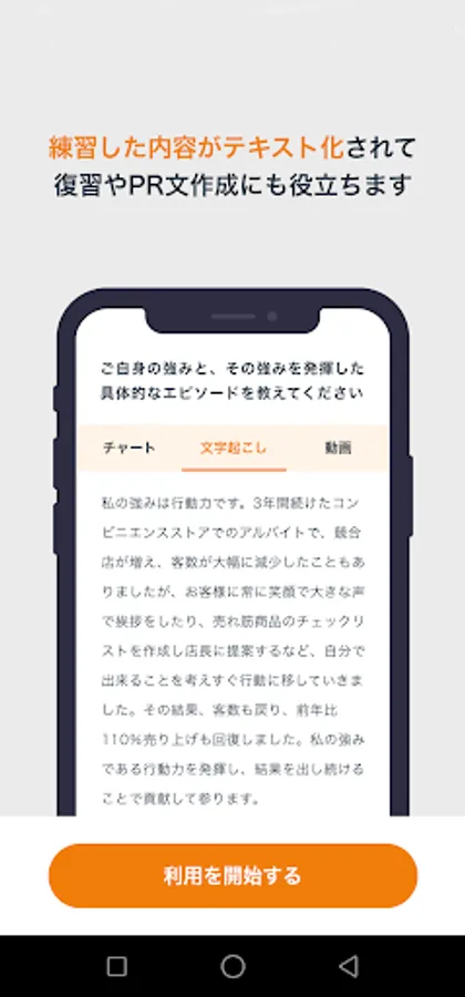 The content of the practice is converted into text, and the AI analyzes the "easiness of communication", which is useful for review and PR creation. Visually check the phrases and composition of the story!