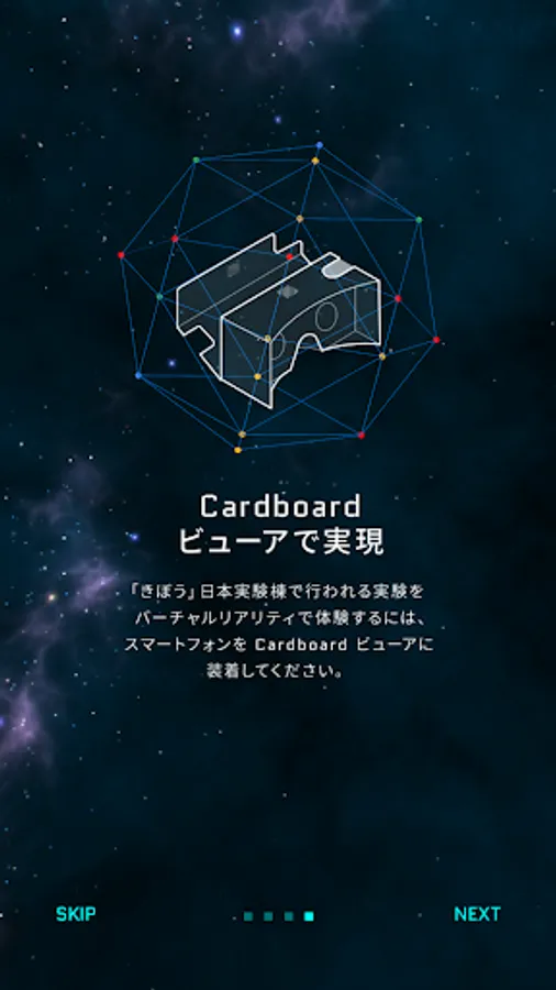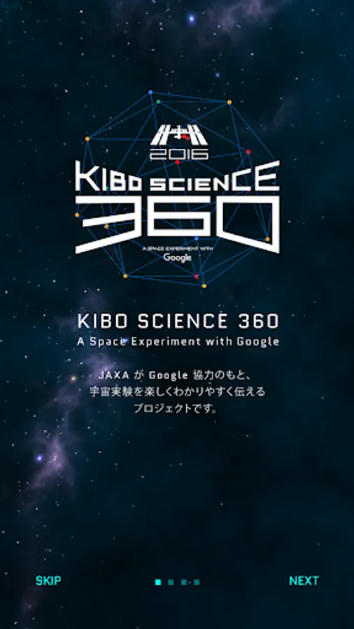 KIBO SCIENCE 360, the Japanese Experiment Module "Kibo" VR (virtual reality) the space experiments carried out in the International Space Station (ISS) is the experience can be app. To download, try to challenge in the universe experiment! A space experiment to experience in the VR is, please attach a smartphone to Google Cardboard viewer (http://g.co/cardboard).