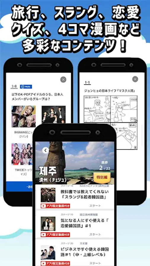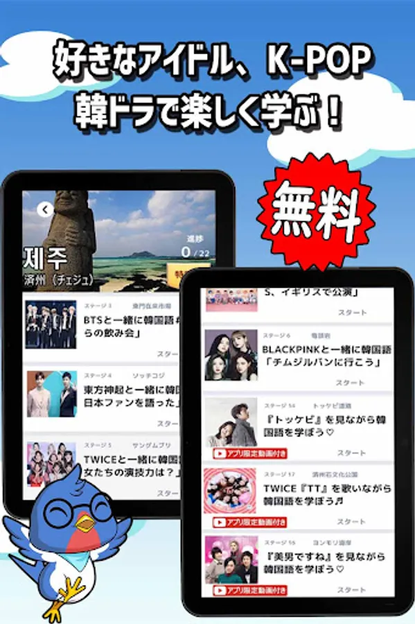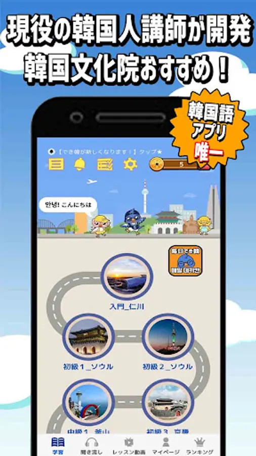 Want to watch Korean dramas without subtitles, or want to know the messages of Korean idols, but are you worried that there are no Korean language classes near you or are expensive? Learn Hangul anytime, anywhere with our free app.