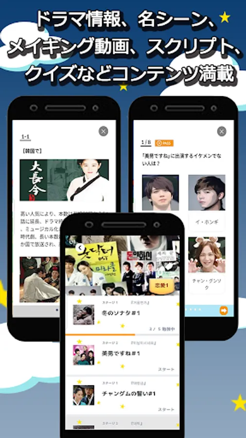 ◉ Various functions such as auto listening, famous scene video (with subtitles), recording and checking pronunciation, 4 choice quiz, etc. will support your learning.