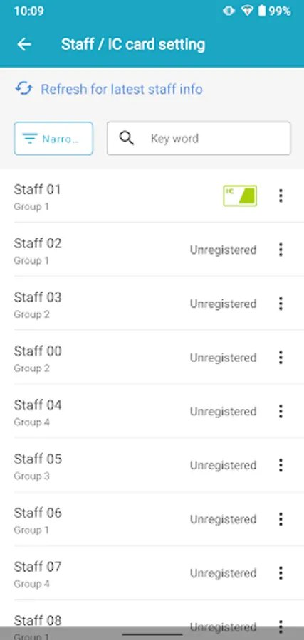 ◆You can update and edit the group/staff list and register IC cards from this application.