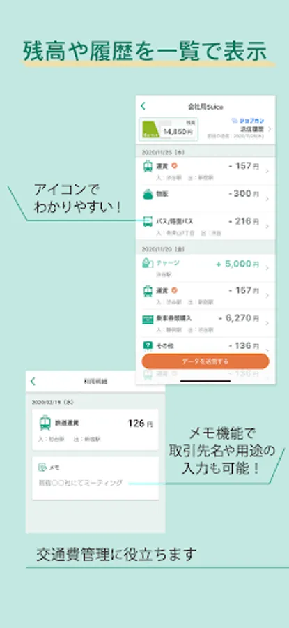 You can send the history of the read IC card transportation expenses to Jobkan Expense Reimbursement.