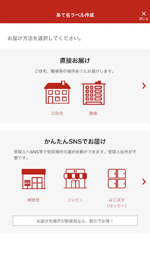 You can use two types of "delivery by simple SNS", which allows the recipient to select the receiving location on SNS etc.