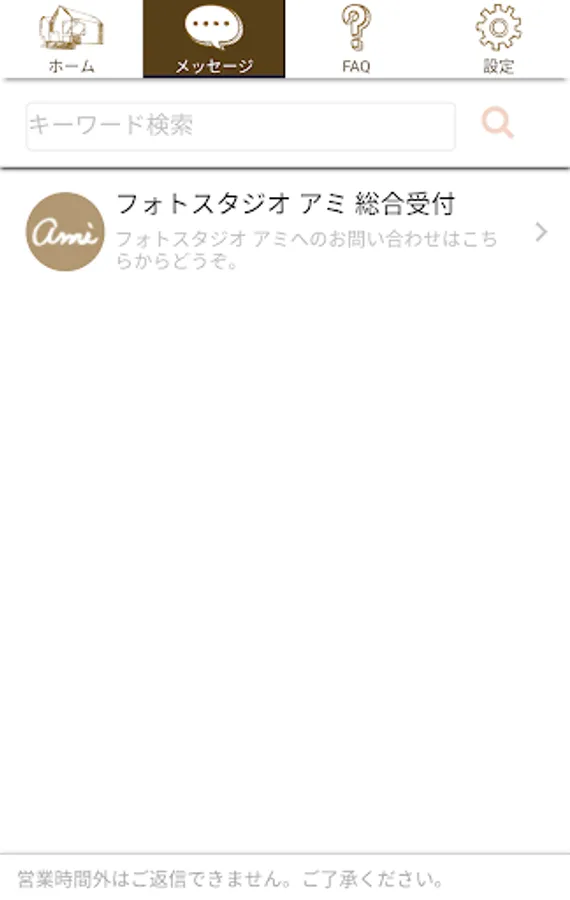 It is an application of the order to be services and message exchange for connecting the photo studio Ami and customers.