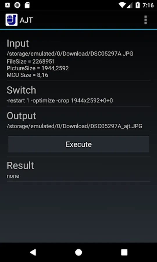 - Tap [Executte] to execute "Jpegtran"