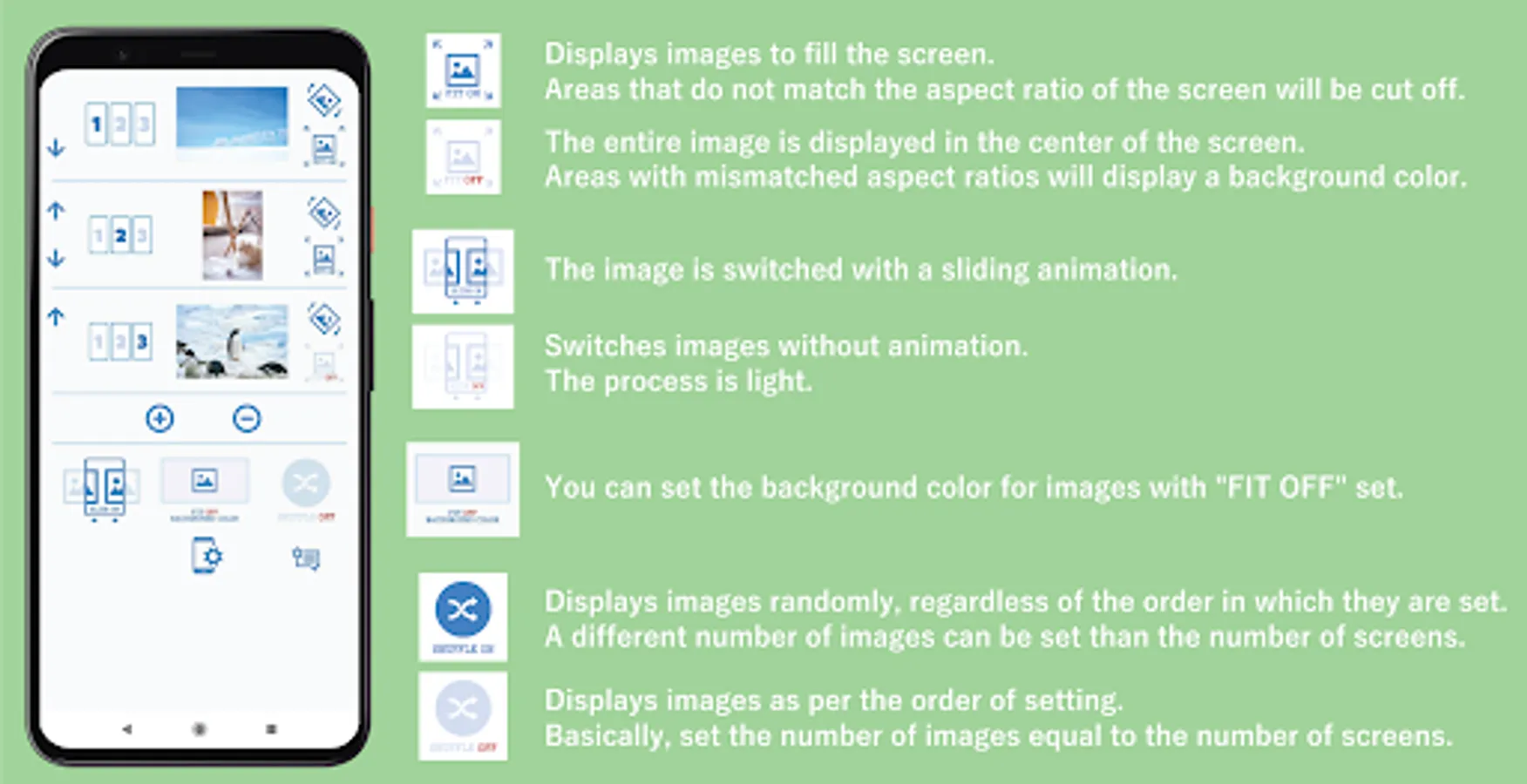 This product is a live wallpaper that allows you to easily set multiple photos as your wallpaper.