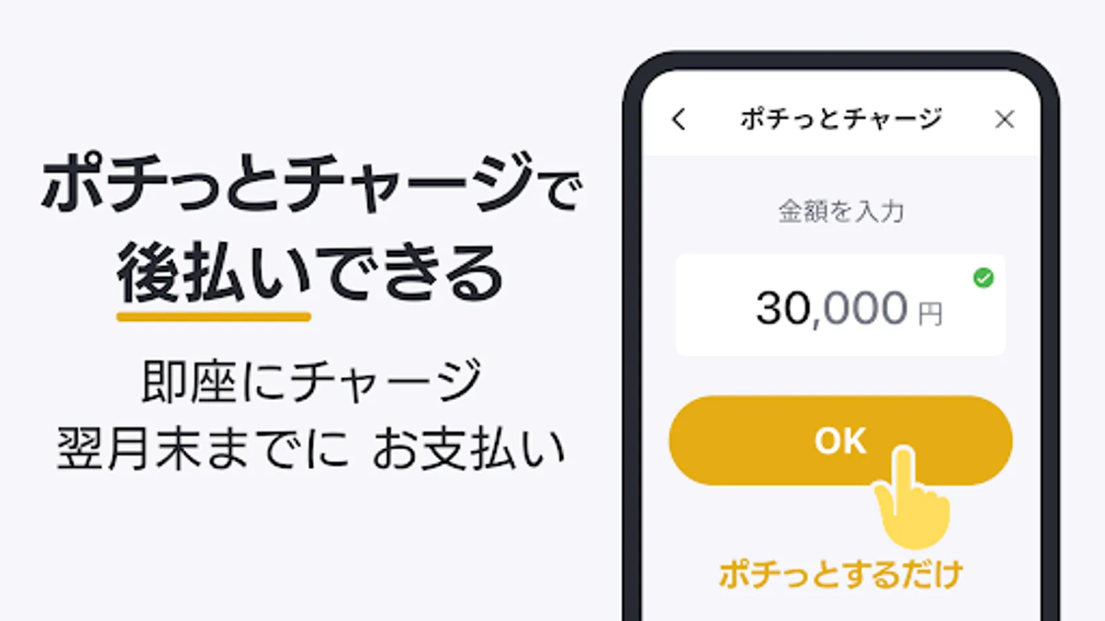 It is available 24 hours a day, 365 days a year, and you can pay the money you have charged with a click at any time until the end of the next month.