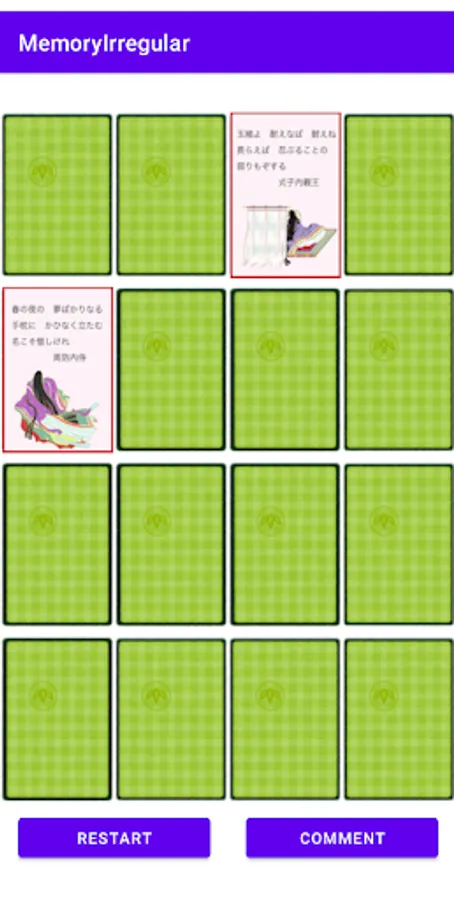If you tap the RESTART button, the cards will be shuffled, so you can enjoy it over and over again.