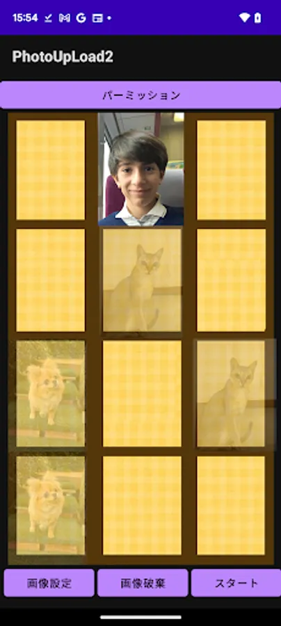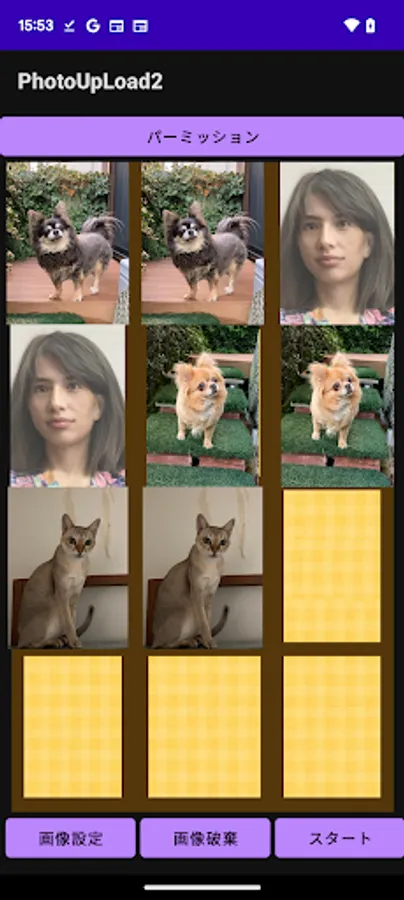 First, set the image with the button on the lower left. If you select an image in your own folder, the image will be set on the tag in pairs. When 6 sets of 12 images are set, no more can be set. When you press the start button on the bottom right, the images are shuffled and turned face down. This is the start of the nervous breakdown game.